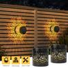 2Pcs Solar Fence Lights Metal Solar Powered Outdoor Wall Deck Step Lights Mandala Theme Waterproof Fence Light for Garden Decor