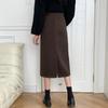 Autumn Winter Wool Brown Skirt Elegant High Waist Slimming Back Slit Midi Bodycon A-Line