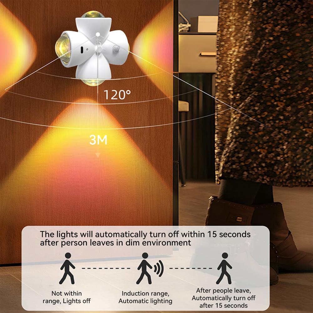 USB Smart Motion Sensor Novelty Lamp 4 Side Lighting 3 Modes Wall-Mounted Atmosphere Lamp for Bedroom Halloween Christmas Decor