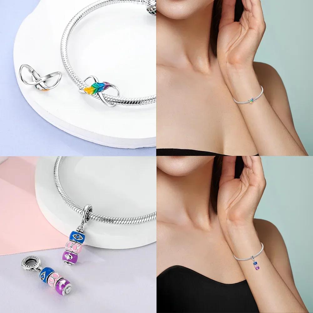 Elegant Colorful Wing Mask Leaves Feathers Pink Angel Original Beads Fit Bracelet Copper Women Diy Birthday Gift Accessory
