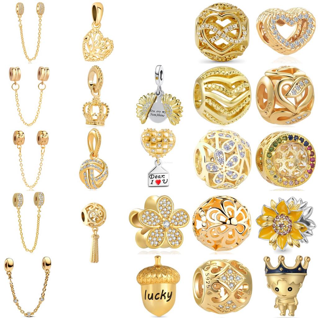 18K Gold Plated Pine Nuts Crown Charm Fit Original Bracelet Shining Bead Diy Women Jewelry Giftcopper Trinket Jewelry Gift