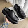 Luxury Leather Platform Man Half Slippers with Heels Genuine Leather Summer Wedding Business Social Shoes Outside Sandals