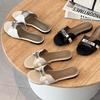 Popular small fragrant cool slippers women's outer wear 2025 summer fashionable versatile metal buckle design one-word flat bottom sandals