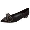 Fashion French Rhinestone Bowknot Black Single Shoes Women's Low Heel Shoes for Women 2025 New Shallow Pointed Thick Heel Shoes Works