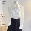HOUZHOU Prašmatnūs marškiniai moterims su smailia apykakle, korėjietiško retro stiliaus, elegantiški, skirti kasdieniam dėvėjimui, klasikinė moteriška palaidinė