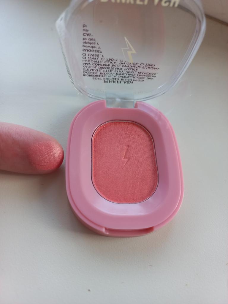 Rožinė su auksiniu blizgesiu, kokybė gera, ant veido dar nebandžiau