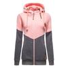 Women's double-zip color-blocked hooded long-sleeved fleece slim sweatshirt