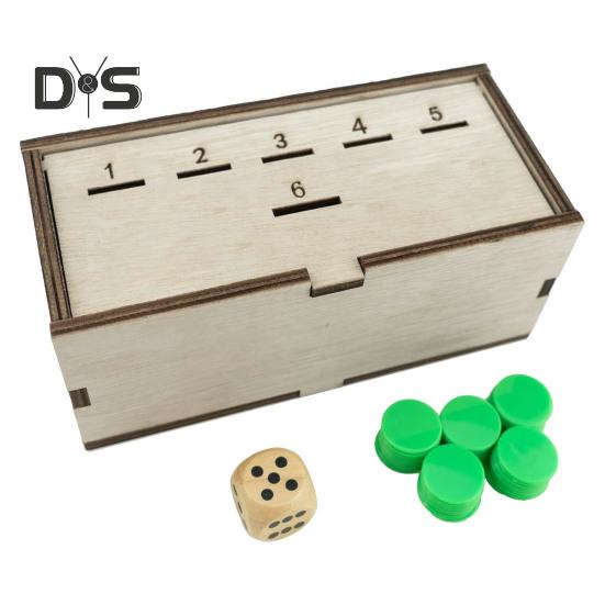 This board game comes complete with a high-quality handmade wooden game box, dice, and green plastic coins. Crafted for durability and portability, this classic tabletop game is perfect for game nights or on-the-go entertainment.