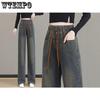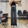Retro Blue Jeans for Women's Spring Wide Leg Pants High Waist Slim Cropped Pants Straight Leg Pants