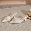 Rhinestone bow pointed head thin heel high heel single shoes women shallow mouth not tired feet summer new rear empty sandals women