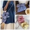 Korean Style Flower Handbag Printing Shoulder Bags Casual Plaid Drawstring Bag Student