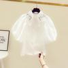 French Style Elegant Puff Sleeve Blouse Fashion Turn-down Collar Chic Diamonds Women's Clothing Summer Single-breasted Shirt New