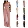 2025 m. vasaros megztas laisvalaikio kostiumas, be rankovių, apvalia iškirpte, trumpas prigludęs viršus, plačios kelnės, dviejų dalių komplektas