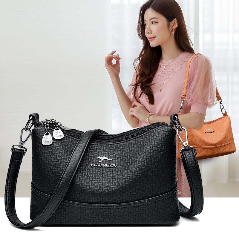 Summer new soft leather shoulder bag women's trend multi-layer casual small square bag texture commuter messenger bag