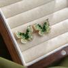Vintage Olive Green Zircon Flower Stud Earrings - Retro Court Style with Heavy Industry Elegance for Women
