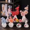 New Chinese Deer Ceramic Vase with Pink Peonies