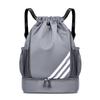 2. Kelių kišenių dizainas:Sportinis krepšys turi šonines tinklines kišenes su elastinėmis juostelėmis abiejose kuprinės pusėse, o priekinėje kišenėje galima laikyti servetėles ir tualeto reikmenis.; Apačioje yra atskiras batų tinklelis; Virvės kišenės viduje taip pat yra papildoma vidinė kišenė su užtrauktuku.