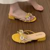 Fashion Luxury Women Slippers Fashion Pearl Bow Shoes Elegant Dress Woman Heeled Sandals 2025 Sexy New Slides Luxury Sandalias De Mujer