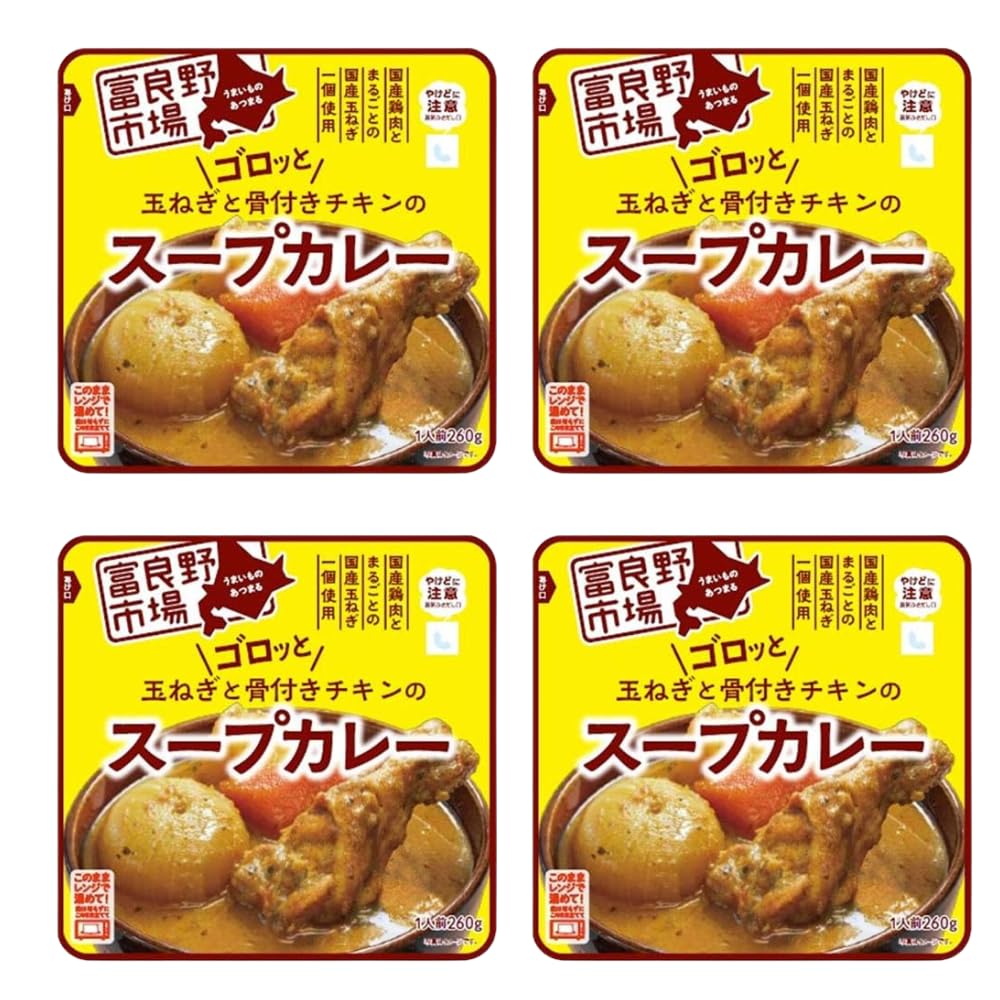 of Furano Market Soup Curry with Onions and with Original Sticker [Set 4] Bone-in Chicken, 260g,