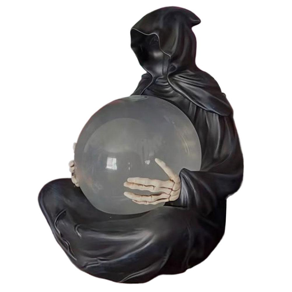 LED Grim Reaper Statue USB Charging Grim Reaper Water Globe Resin Spooky Sculpture Ornament for Halloween Party Decoration
