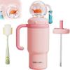 5. Easy to Use: Comes with 2 lids (fountain lid and straight-drink lid) for dual drinking modes, adding fun and versatility. The ergonomically designed handle makes it easy to grip and drink from any angle. The silicone base reduces noise, prevents slipping, and adds stability. A built-in anti-colic valve minimizes discomfort and choking risks.