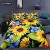Sunflower Bedding Set Modern Microfiber Yellow Flowers Print Duvet Cover Alluring Sunflowers Summer Inspired Design Quilt Cover