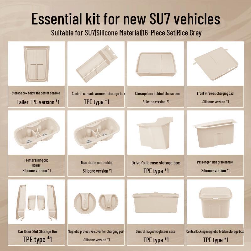 Xiaomi SU7 Interior Kit: 16-Piece Storage & Protection Set for Console & Cup Holder