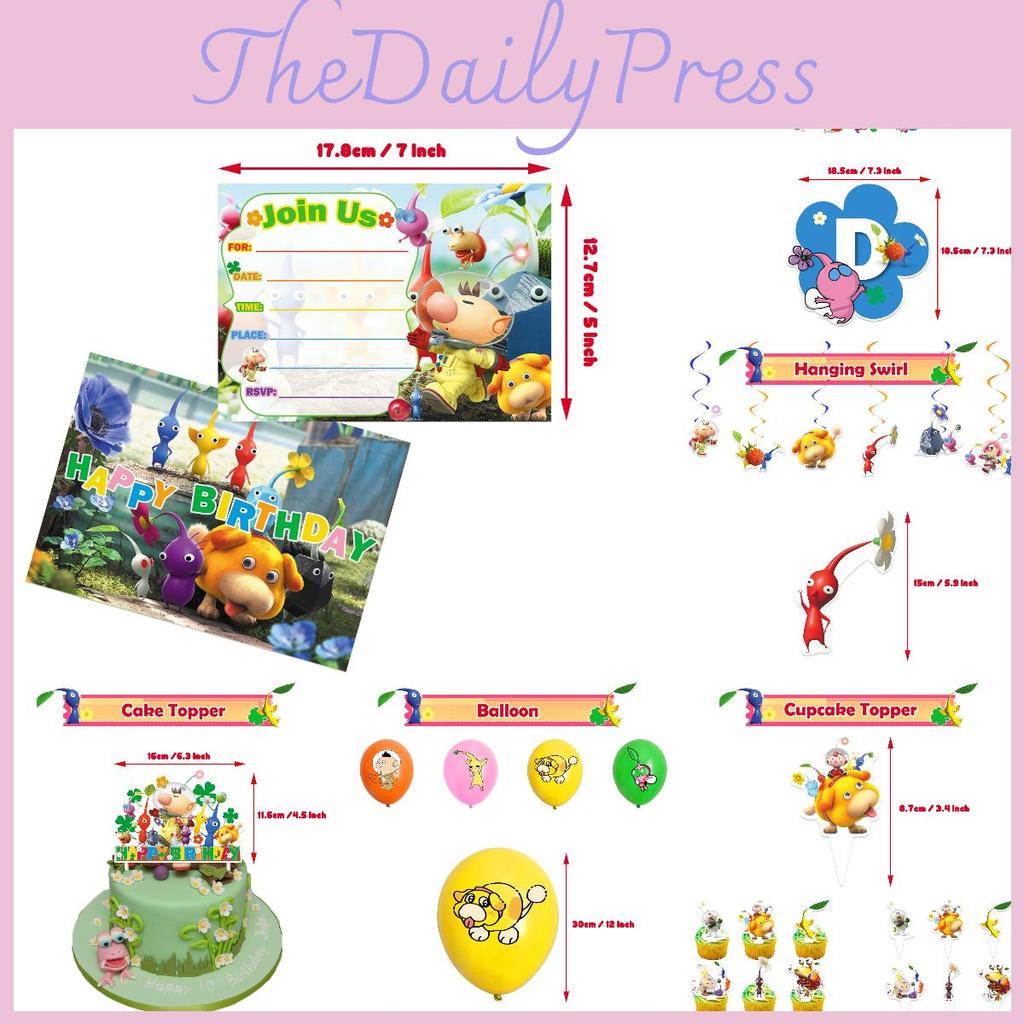 Pikmin-4 Birthday Party Decoration Set Paper Banner Balloons Cake Topper Cupcake Toppers And More!