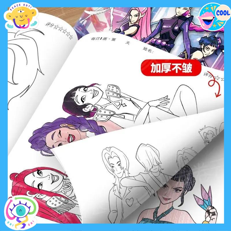 Anime peripheral KPop demon hunter coloring book picture book peripheral drawing linear drawing children's birthday gift