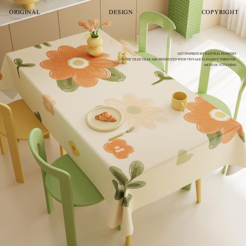 Fresh Floral Rectangle Tablecloth Kitchen Dining, Waterproof Oil-Proof Non-Stick Botanical Table Cover Home Decor