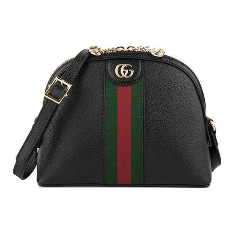 Gucci Ophidia Black Leather Dome Crossbody Bag With Web Stripe