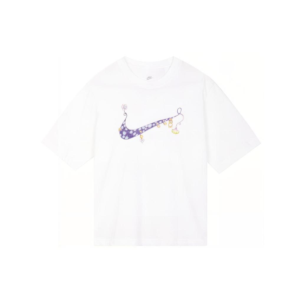 Nike Abstract Hand-Drawn Pattern Printed Loose Round Neck Short Sleeve T-Shirt Women Tops White FD9315-100