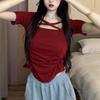 Irregular Drawstring Short-sleeved T-shirt Women's Summer Large Size Fat Mm Thin Covering Meat Chic Sweet and Spicy Short Square Collar Top — pirkt lēti interneta veikalā Joom
