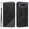 For iPhone 17 Air Leather Case Geometric Line Design Wallet Phone Cover with Wrist Strap
