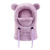 Yousheng Kids Ski Hat Solid Color Bear Ear Decor 3-in-1 Face Guard Scarf Headgear Cold Weather Windproof Fleece Headgear with Adjustable Cords