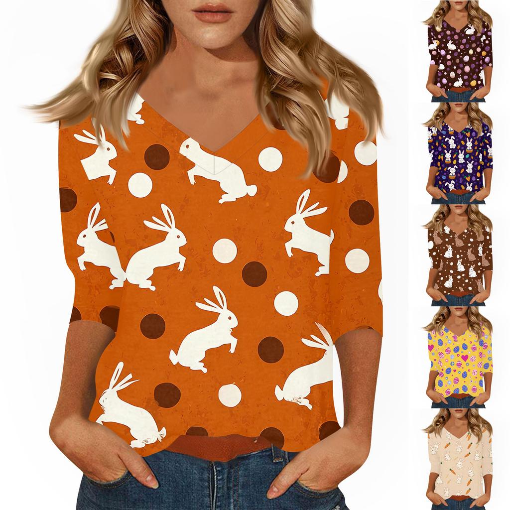 Sieviešu T krekls ar apdruku ar 3/4 piedurknēm ikdienas nedēļas nogales modes pamata V veida kakla izgriezuma parastais tops — pirkt lēti interneta veikalā Joom