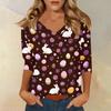 Sieviešu T krekls ar apdruku ar 3/4 piedurknēm ikdienas nedēļas nogales modes pamata V veida kakla izgriezuma parastais tops