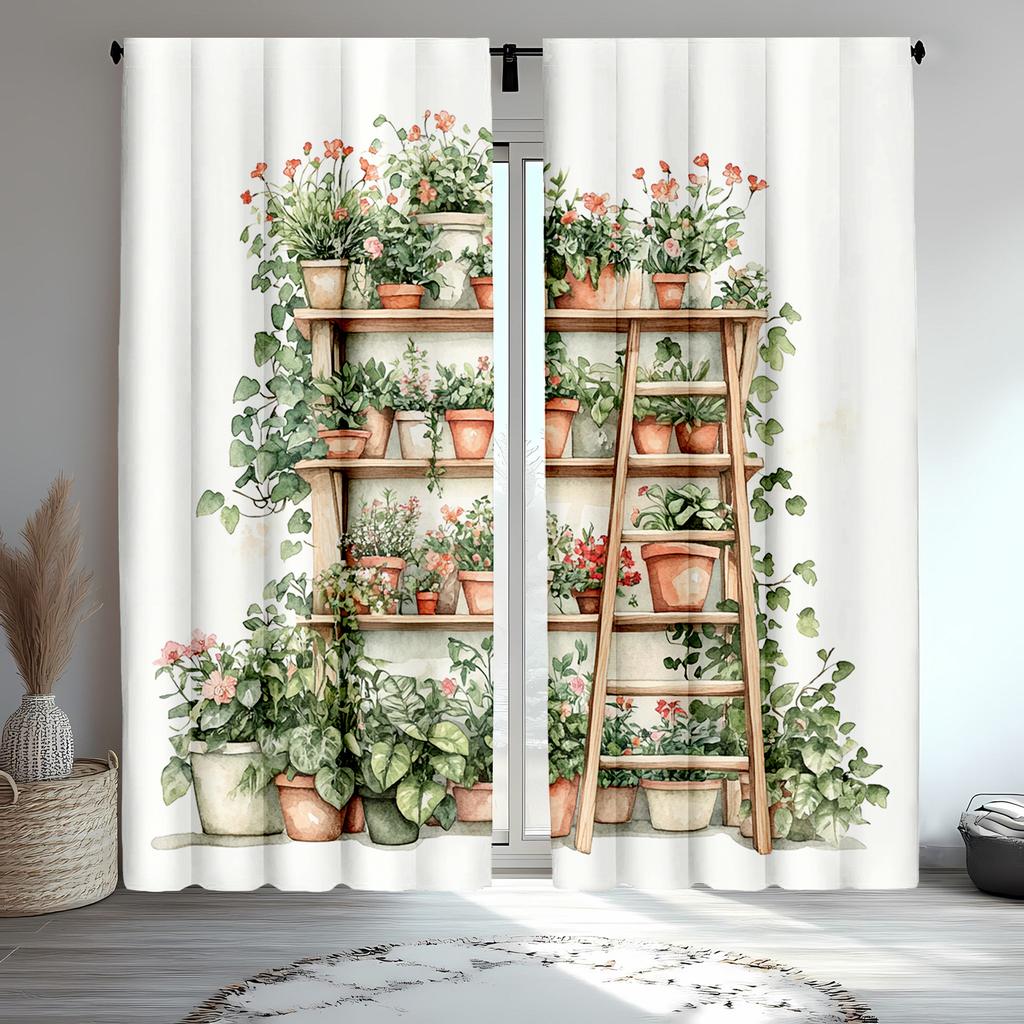 2pcs Flower Plant Kitchen Curtains Green Leaf Cafe Short Window Drapes for Laundry & Dining Room Decorative curtains
