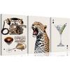 Leopard Set of 3 Canvas Wall Art Trendy Cheetah Wall Decor Painting Pictures Espresso Martini Posters Prints Preppy Aesthetic Artwork for Women