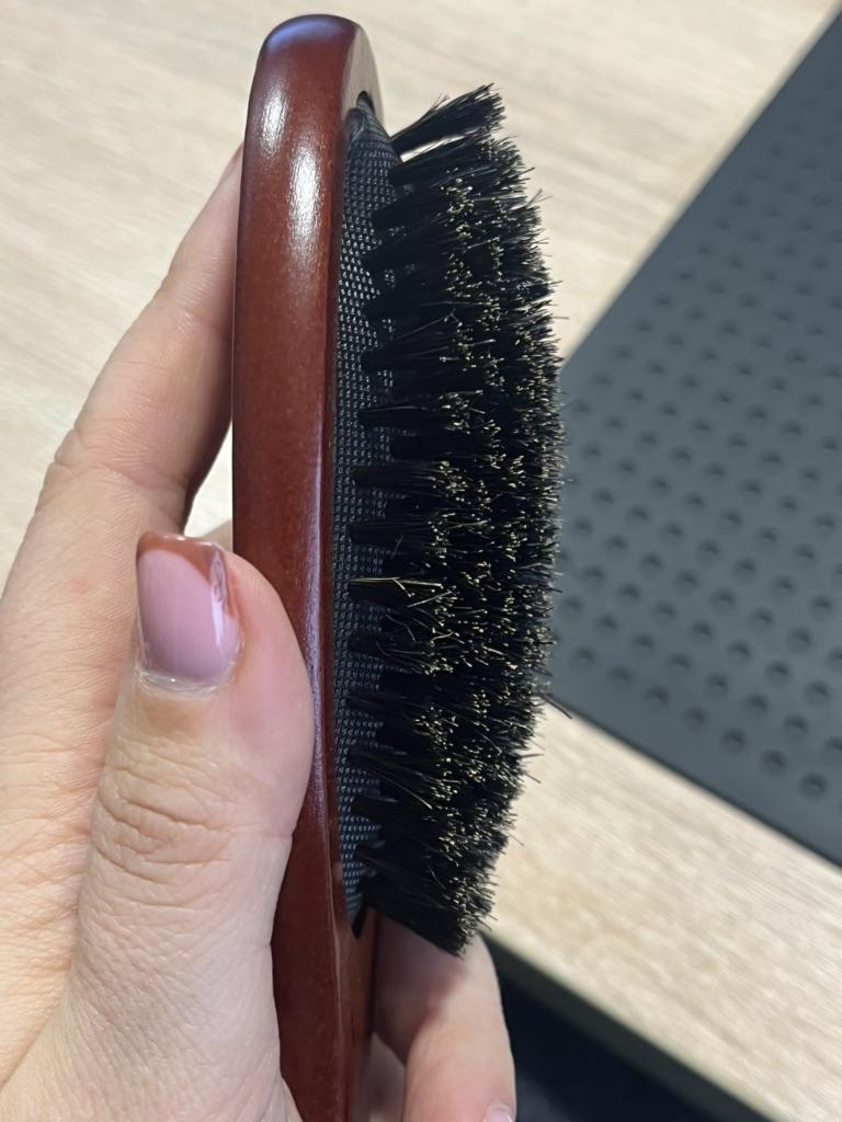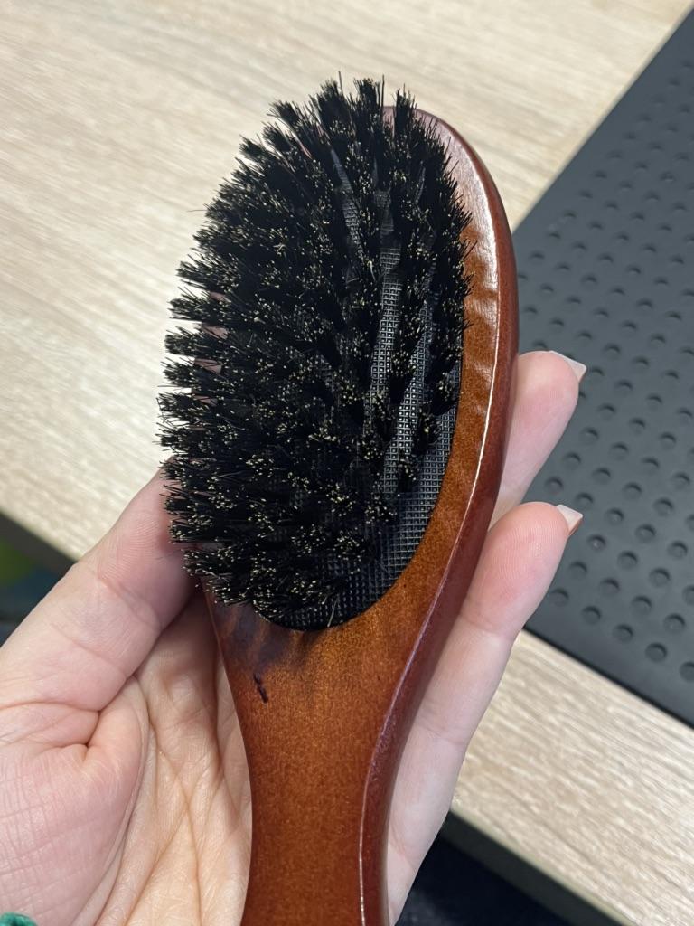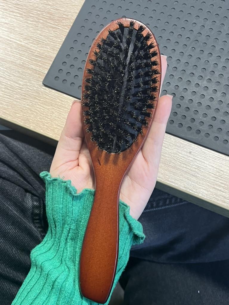 hårbørste Den er delikat og trekker ikke ut hår Den har ganske mye fiber for å gre, så den fungerer veldig bra Den er laget av materiale av god kvalitet, dessuten er det tre, ikke plast Se for deg selv