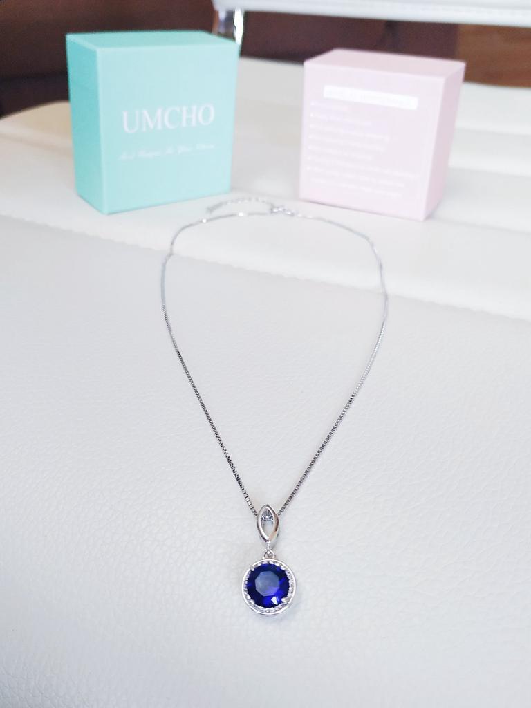 UMCHO blå safir runde anheng Halskjeder for kvinner Kjedelenke sjarm smykker edelsten gave med eske — kjøp online billig på Joom-butikken