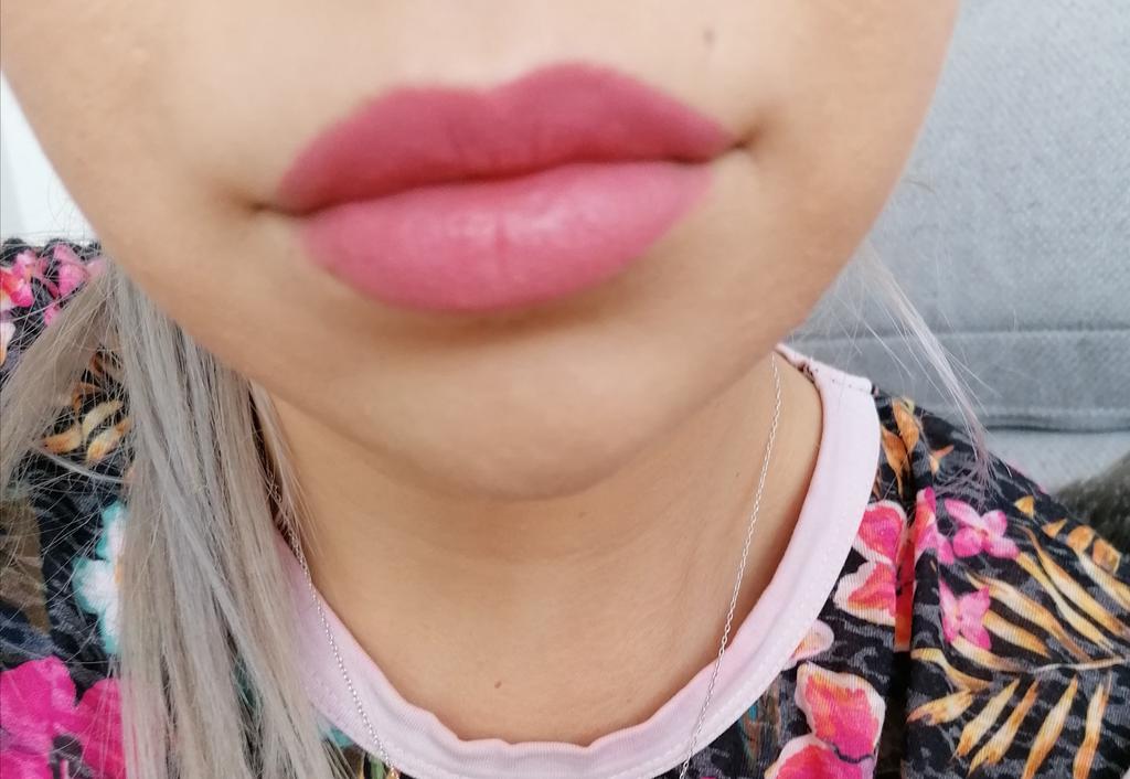 Semi matte, auf den Lippen noch beweglich. Geruch angenehm, nicht Kuss / trink fest. Trotzdem sehr schöner Lippenstift :)
