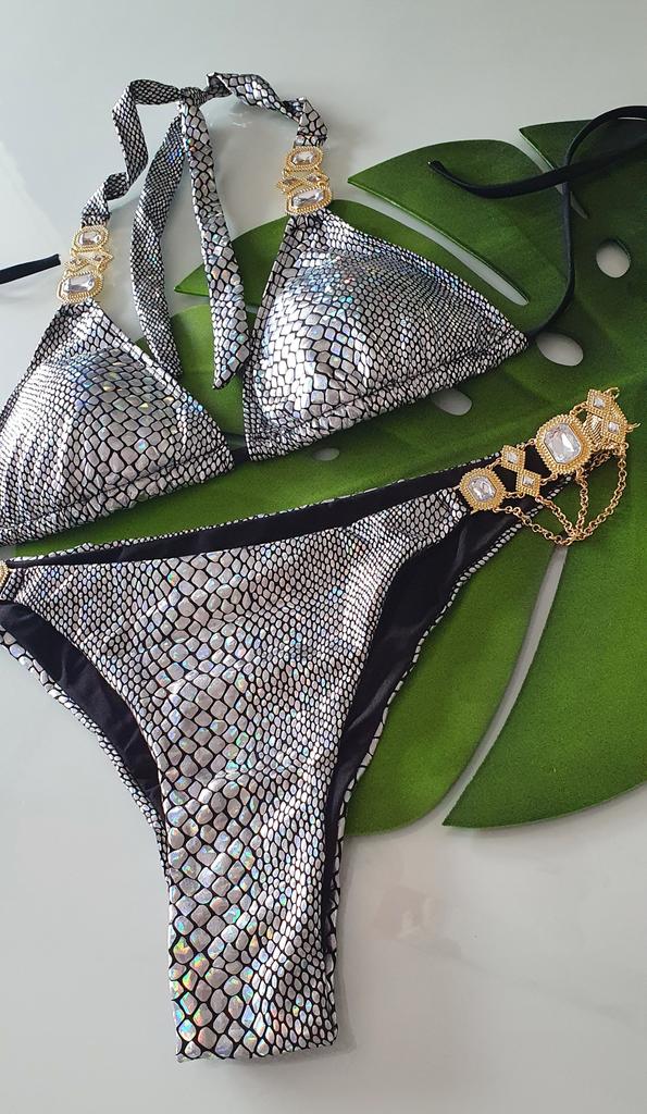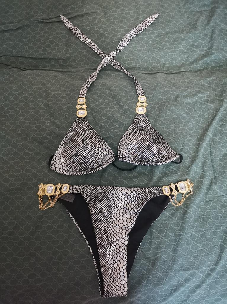 Badedrakt Crystal Diamond Chain Damebadedrakt Bronse Snake Tie Sexy Bikini — kjøp online billig på Joom-butikken