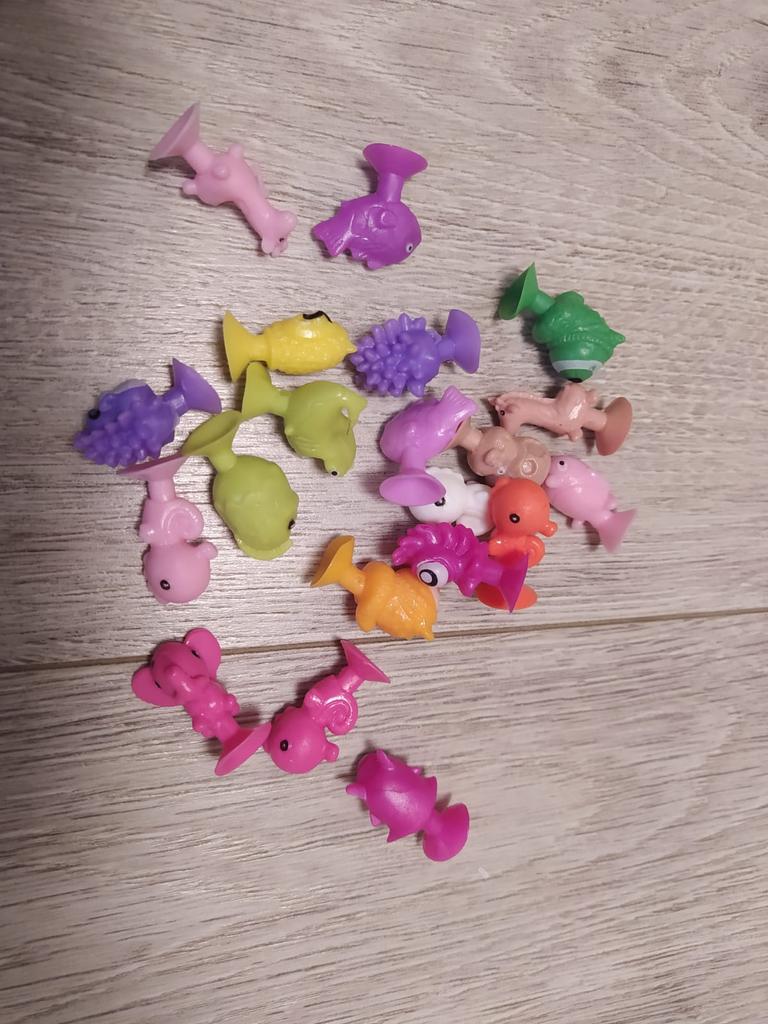 De er interessante. Fargene er passende. De har ingen lukt. Sugekoppene holder godt. Den eneste mangelen vil være at for noen stykker vil du ikke kunne fortelle et barn hva slags dyr eller skapning det er.