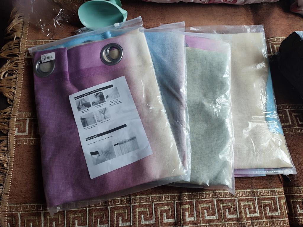Leveringen er rask, hver er pakket i en individuell pakke. Stoffet er behagelig å ta på, alle ringene er på plass, fargene er lyse. Jeg legger til en anmeldelse når vi legger den på Ved første øyekast er jeg veldig fornøyd med kjøpet