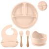 3/5 stk Baby silikonskål Sugeplate vedgaffelskje med vanntett smekkesett Småbarn som trener å spise Matservisesett