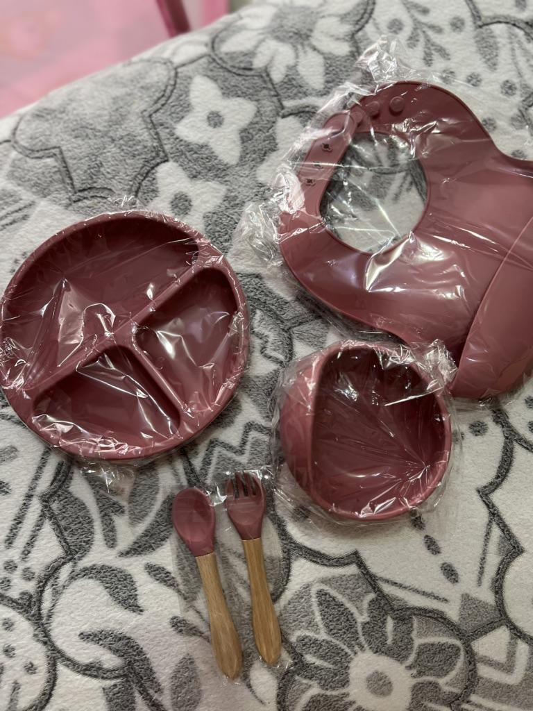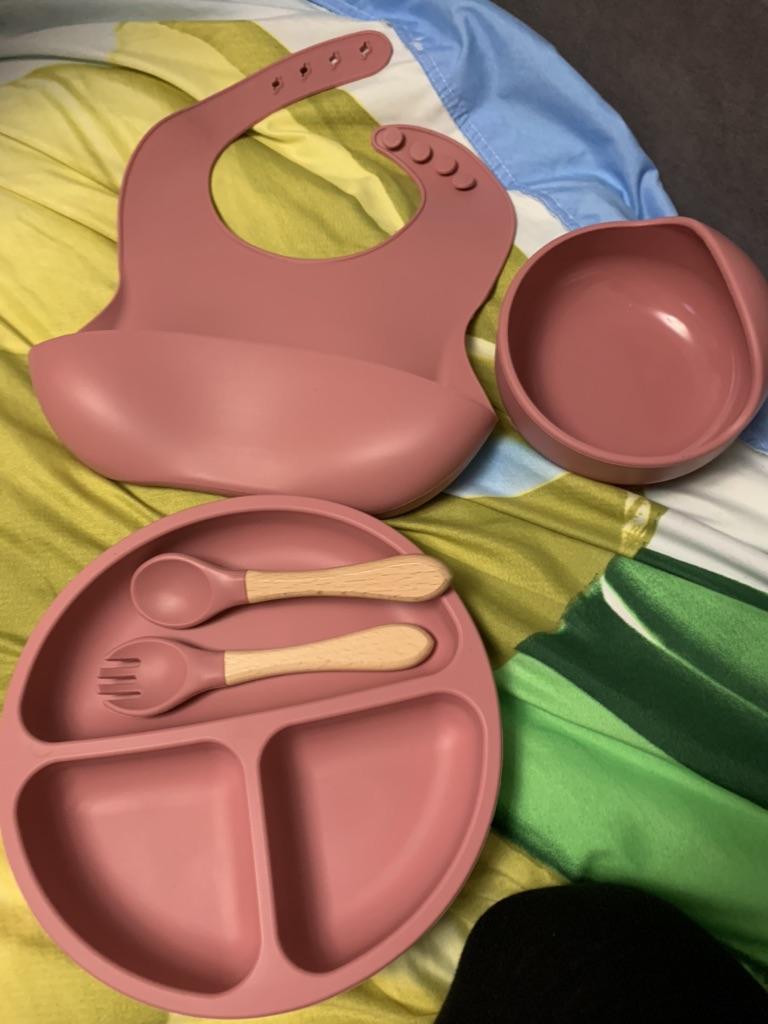 3/5 stk Baby silikonskål Sugeplate vedgaffelskje med vanntett smekkesett Småbarn som trener å spise Matservisesett — kjøp online billig på Joom-butikken