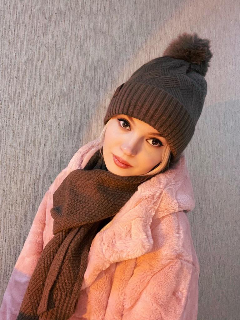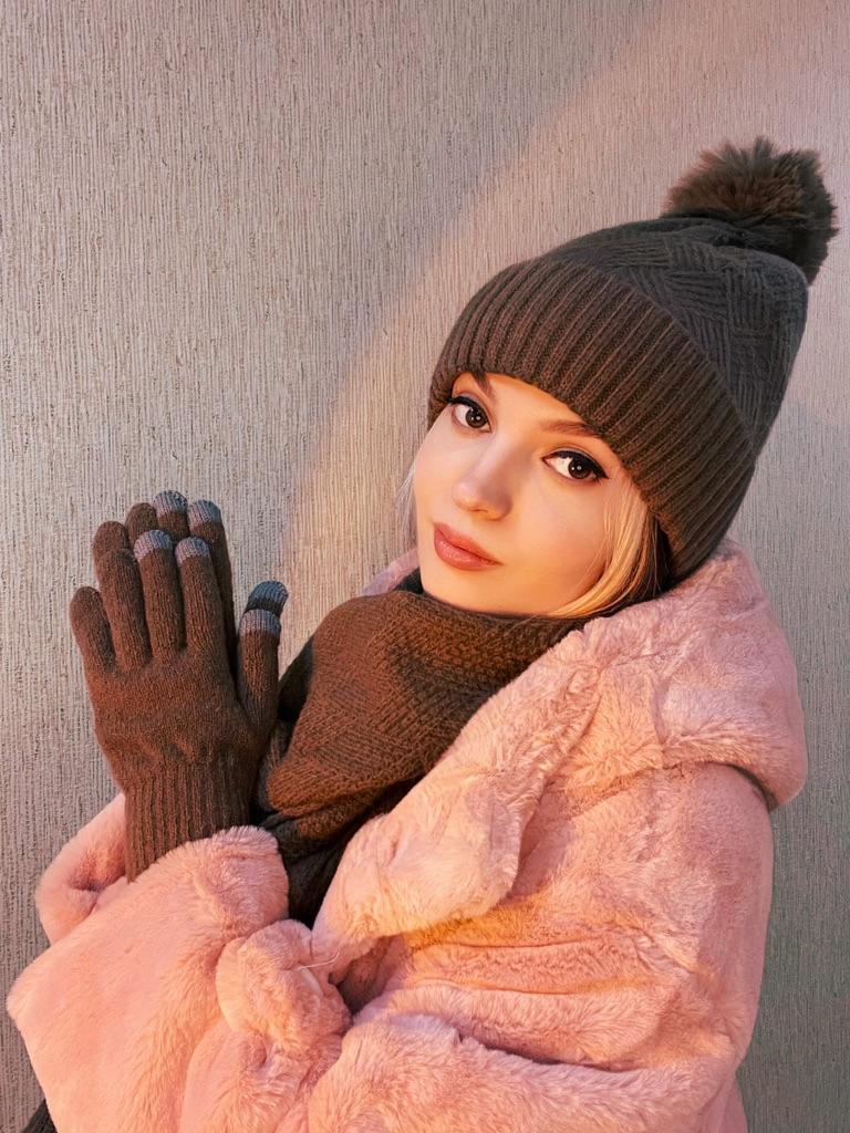Kvinners vinterstrikkede varmelue i ull Skjerfhansker Tredelt ørevernhette — kjøp online billig på Joom-butikken