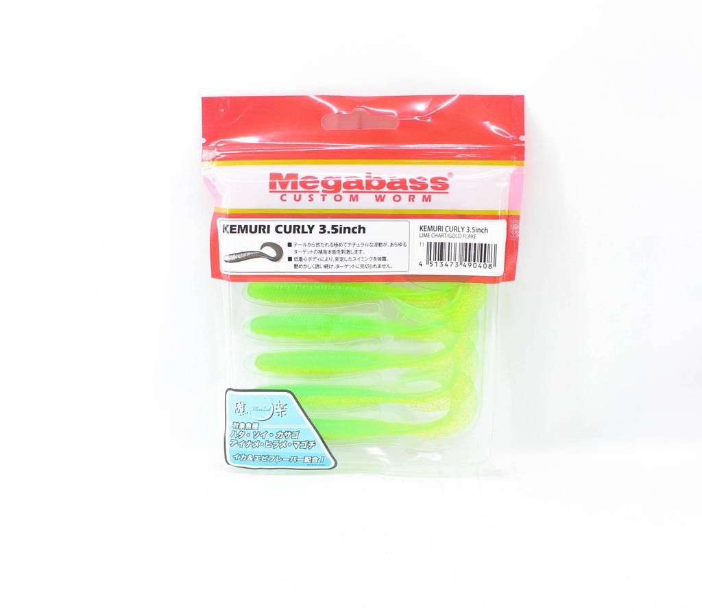 Megabass Myk sluk Kemuri Curly 3,5 tommer Lime Chart Gold F (0408)