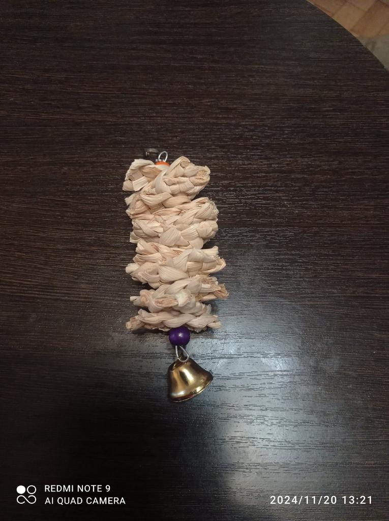 Jeg kjøper allerede den andre gnageleken, den første ble helt fillete av papegøyen, så jeg kjøpte en ny..